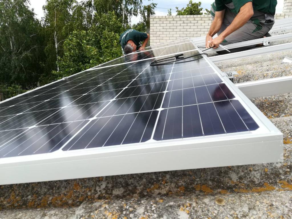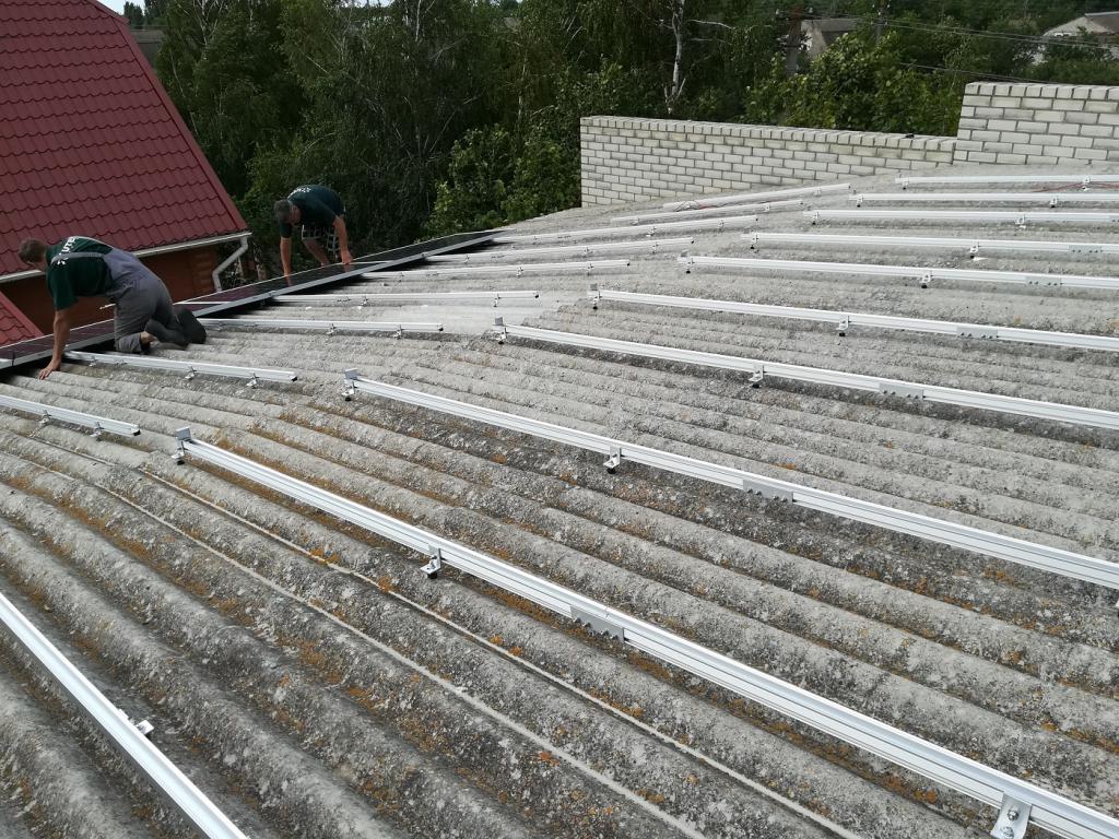 Это уже наша четвертая электростанция смонтированная на солнечных батареях LONGi Solar со стандартными габаритами мощностью 300 Вт и, внимание, первая электростанция за время существования нашей компании смонтированная на крыше из шифера. Учитывая использование хороших систем крепления из алюминия все получилось действительно отлично. Это была первая очередь солнечной электростанции, а реализацию второй очереди мы начнем через 2 недели на наземных конструкциях.