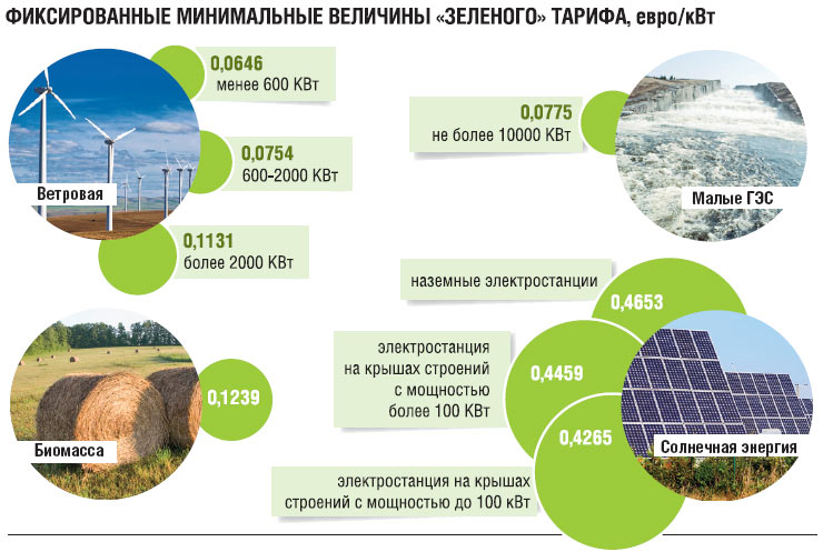 Да, у нас высокий зеленый тариф на покупку электроэнергии, произведенной возобновляемыми источниками. Все же, не смотря на огромные объекты компаний типа Activ Solar, нам еще очень далеко до европейских стран в развитии альтернативной энергетики, и вообще эффективности (как впрочем, и во всех остальных сферах). Доля энергии, произведенной из возобновляемых источников, по оценкам экспертов, у нас составляет 0,8%, в Германии и Дании – более 12%. Причина - Закон о зеленом тарифе. По большому счету, спасибо нашим законотворцам, что данный закон вообще есть, но он (как и многие другие) принят, прежде всего, под средний и крупный бизнес. Вот мнение эксперта А. Куксина по этому поводу: «К большому сожалению, зеленый тариф в Украине пока что остается очередным каналом выкачивания денег, в основном государственных, в карманы определенного круга чиновников. Ведь основным покупателем “зеленого” электричества по законодательству является ГП «Энергорынок», а основными покупателями «Энергорынка» являются облэнерго». Как видим, в этом законе хоть и предусматривается возможность продажи энергии по зеленому тарифу напрямую потребителям, но реальные экономические или административные стимулы для её покупки по этим тарифам так и не были созданы.