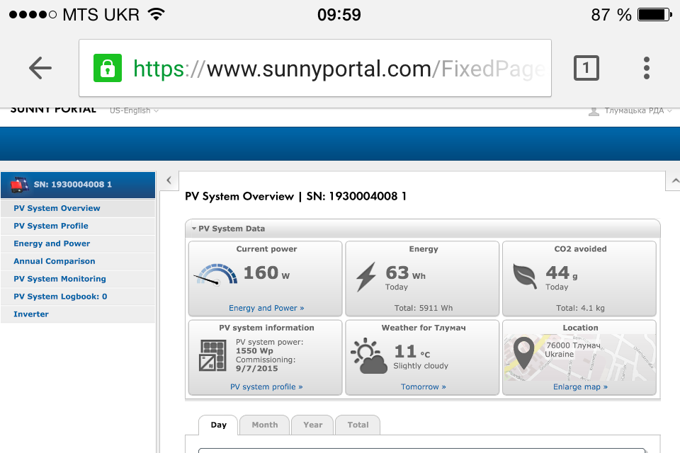 Для просмотра и слежения за производительностью солнечной электростанции в онлайне кликните по картинке ниже:
