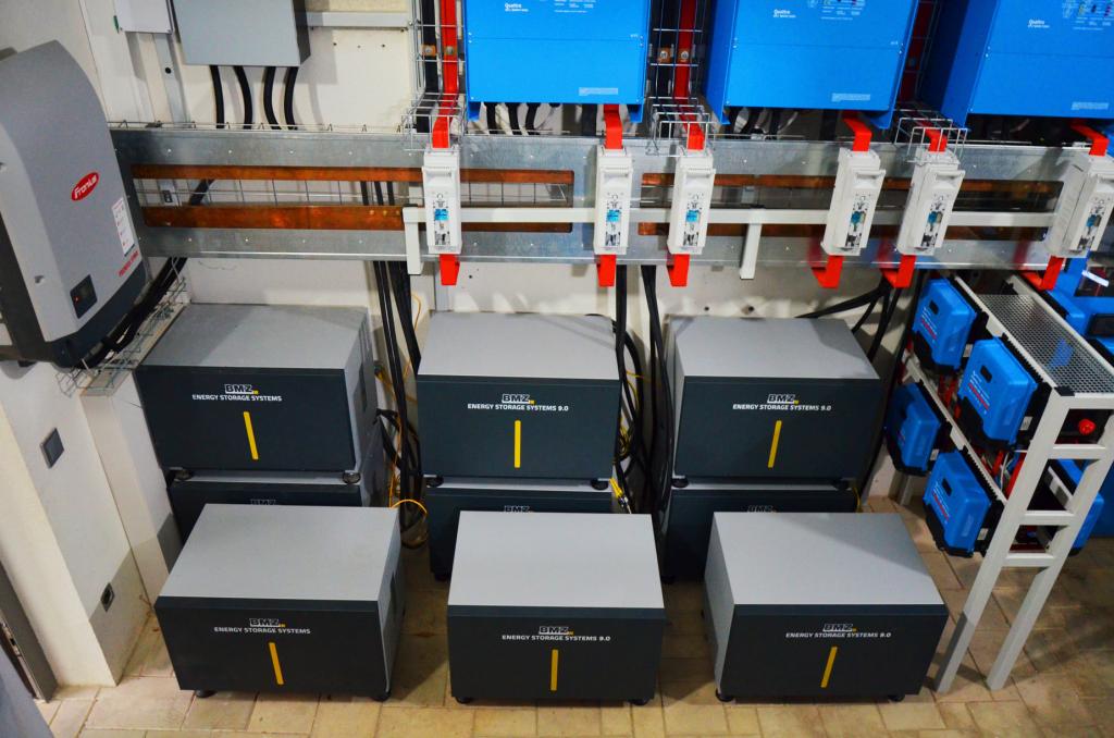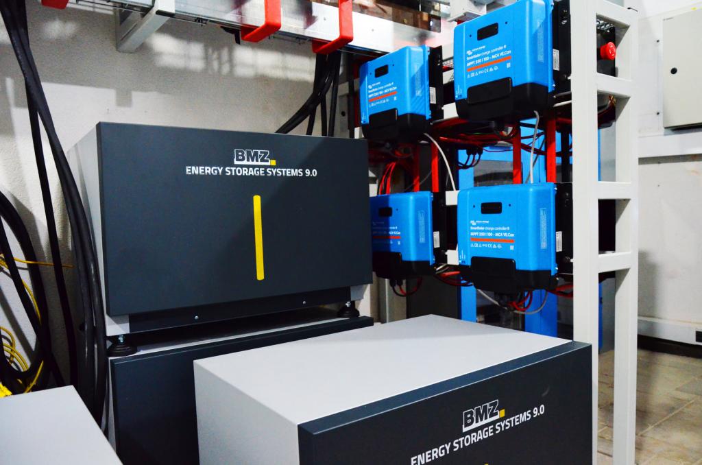 Зберігання енергії забезпечує літій-іонна система накопичення енергії BMZ ESS 9.0 - 9 шт. з загальним запасом енергії 76,5 кВт*годин.