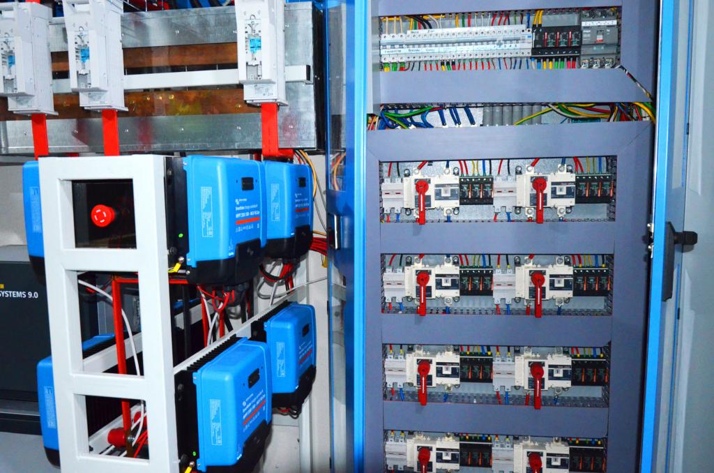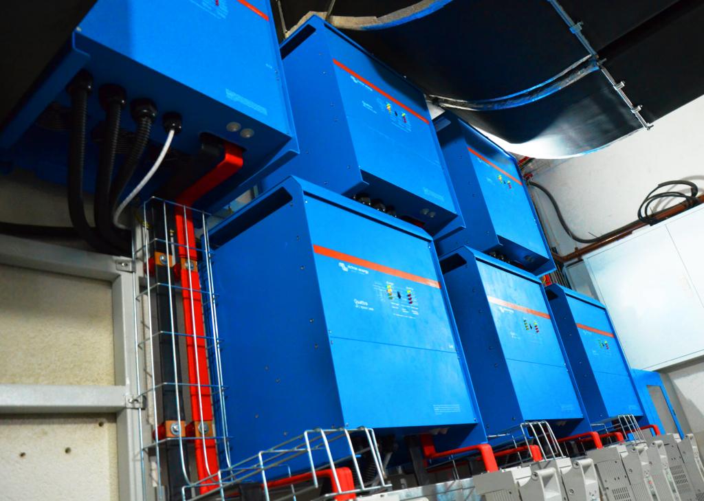 Для вирішення поставленої задачі традиційно використали обладнання від компанії Victron Energy, що повністю бере на себе управління всією системою. Встановили шість автономних інверторів Victron Quattro 48/15000 загальною потужністю 72 кВт .