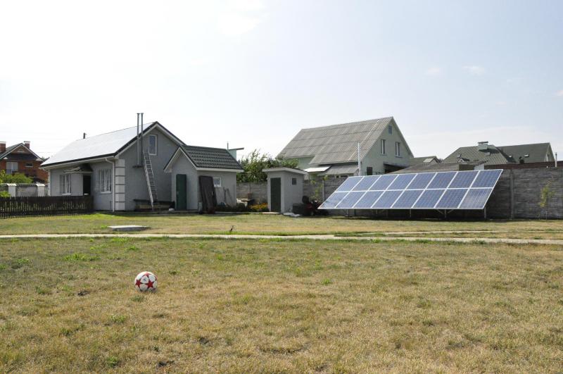 Ділянка ділиться на дві частини у кожній з яких свій вхід (2 окремих лічильника). Річне споживання даного будинку для гостей не перевищує 300 кВт на рік, тому весь згенерований обсяг електроенергії господарі установки продадуть по Зеленим тарифом, что істотно вплине на термін окупності.
