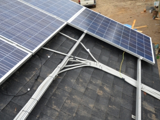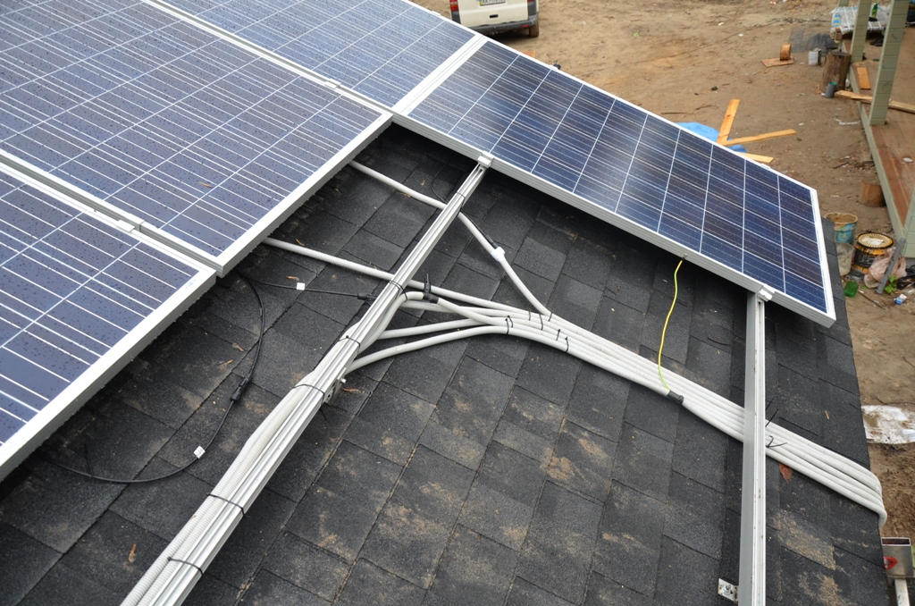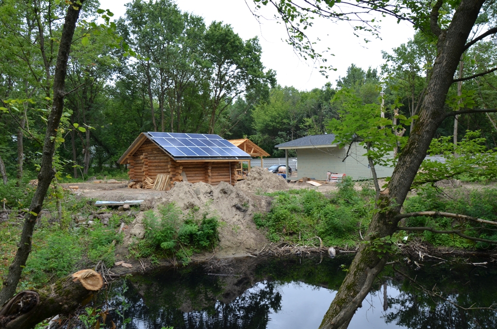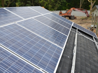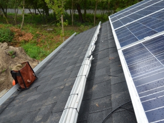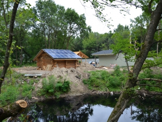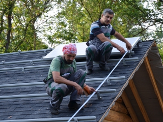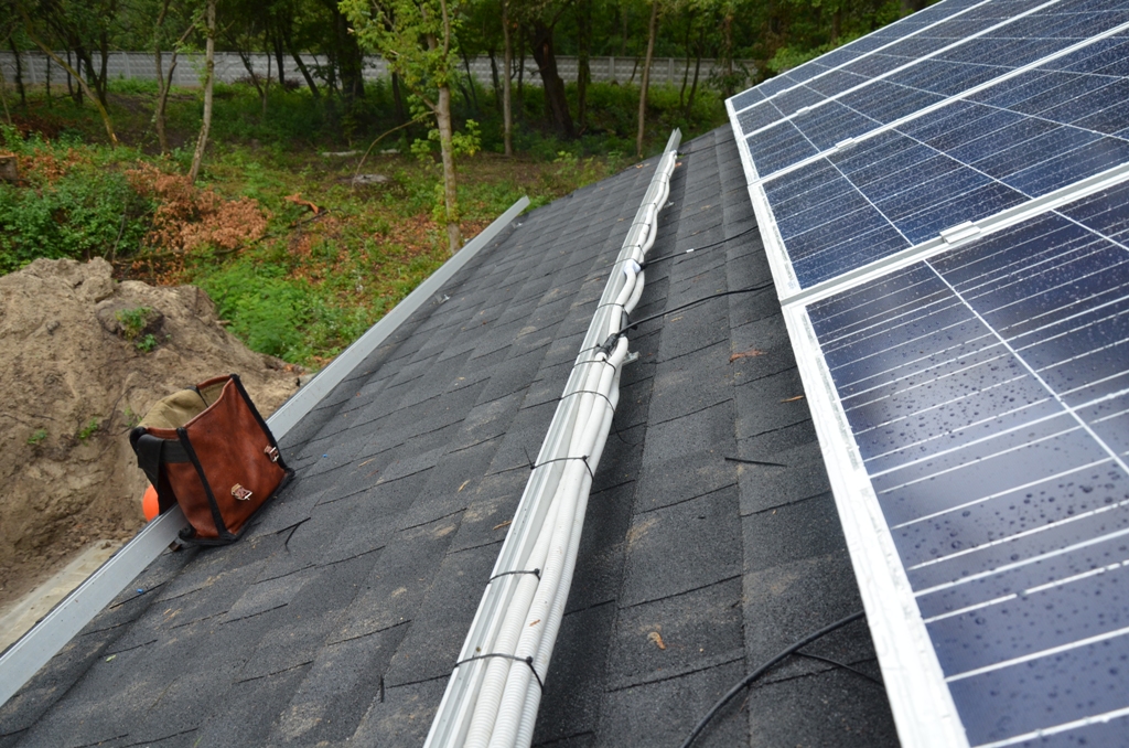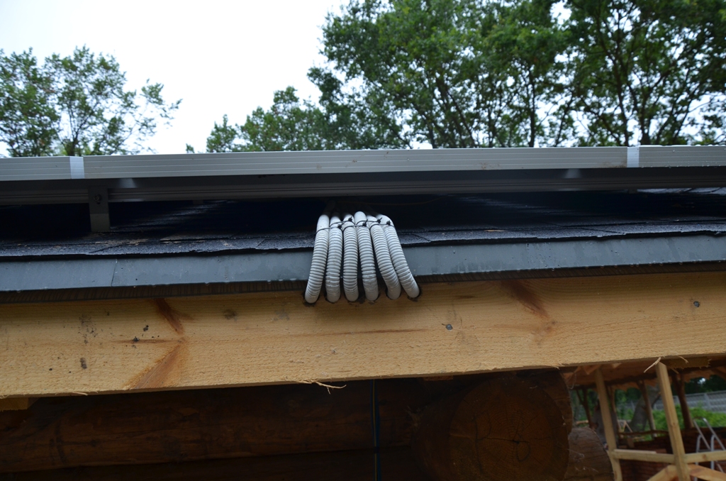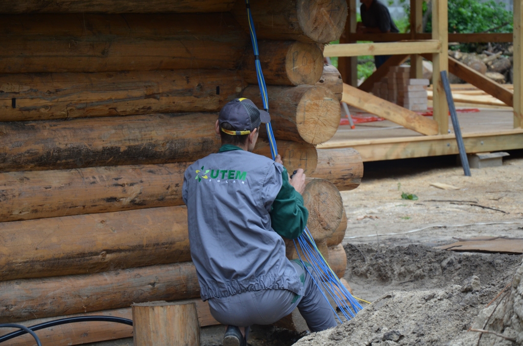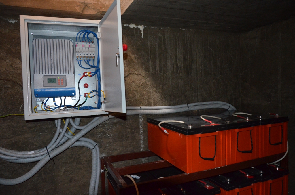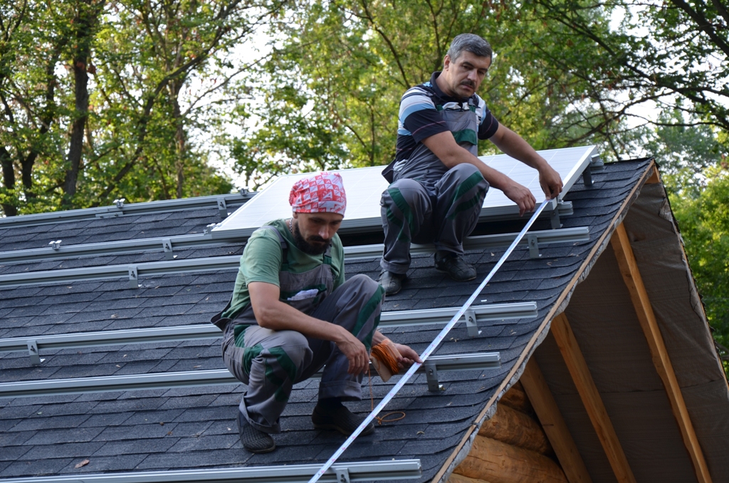 Повністю автономна акумуляторна система харчування для затишного банного комплексу розташованого на плавнях річки Дніпро в Черкаській області. Завдання полягало в монтажі, запуск та налаштування потрібного режиму роботи автономної системи. На даному об'єкті замовник захотів застосувати самостійно куплене обладнання, так що у нас була відмінна можливість спробувати попрацювати з китайським виробником перетворювати обладнання, що виходить у наших фахівців вкрай рідко. Проте ми впоралися: сонячні батареї змонтували, інвертор запустили, правильну роботу налаштували. Гофротруба в підвалі буде додатково закріплена після закінчення будівельних робіт. Стелажі під інвертор і акумулятори виготовлені самостійно компанією UTEM SOLAR. Монтаж проходив при дійсно аномальної спеки, коли в тіні градусник показував 35-37 ° C, а на даху температура перевищувала позначку в 40 ° C.