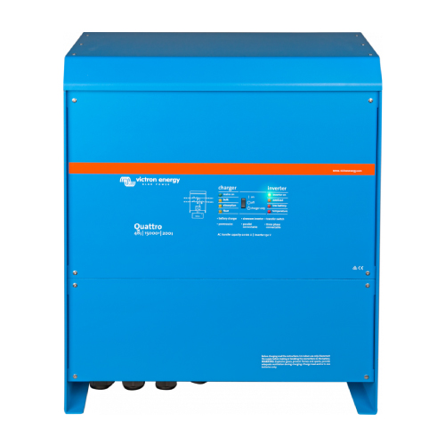 Victron Quattro 48/10000 — це інвертор чисто синусоїдальної хвилі, що включає в себе складне зарядний пристрій, засноване на адаптивної технології зарядки і високошвидкісний перемикач змінного струму.